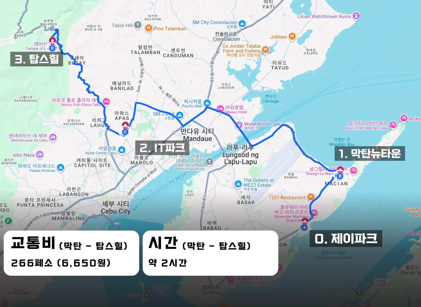 막탄에서 탑스힐까지 대중교통으로 가는 법