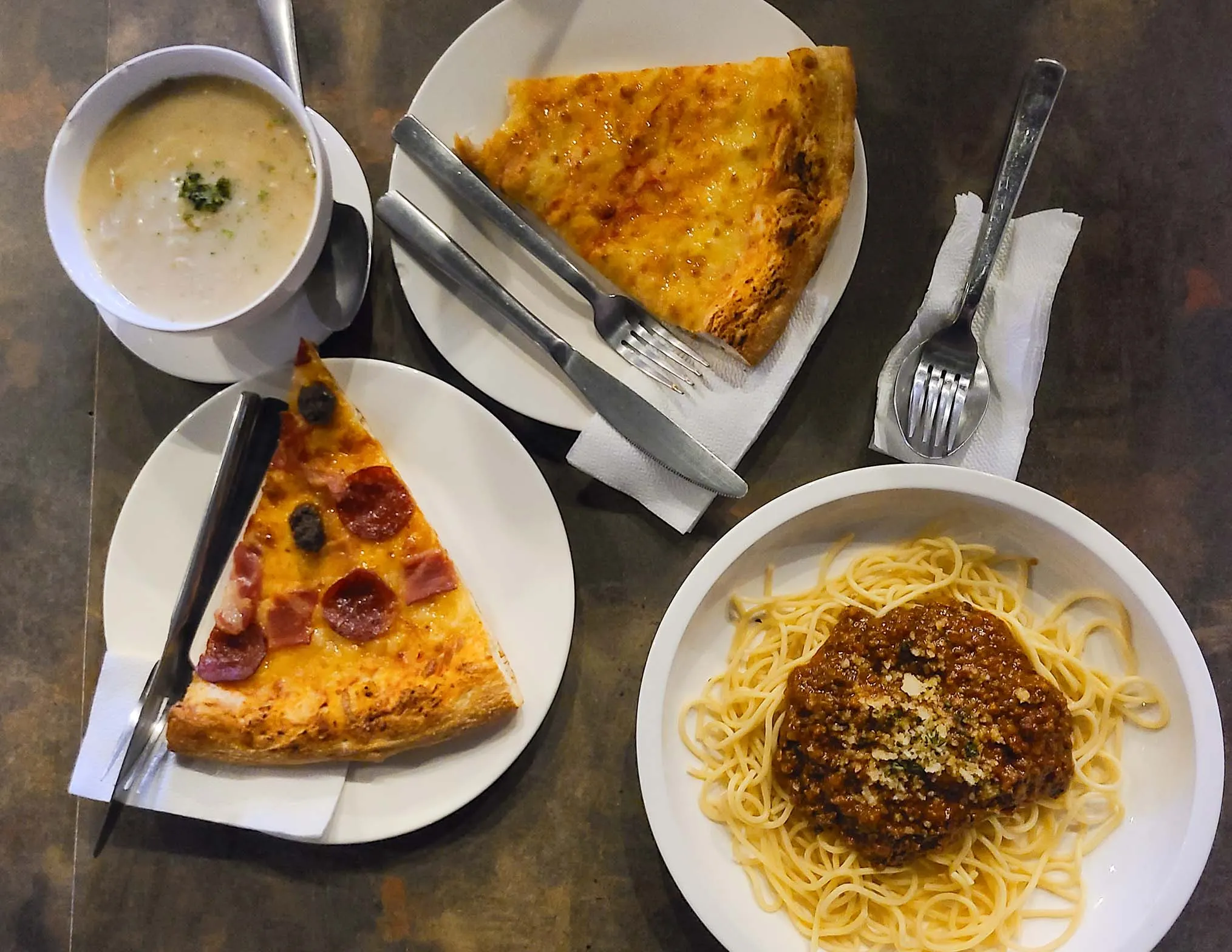 1층에 있는 탑스 퀸스 피자(Tops Queen’s Pizza) 에서 식사했어요.
