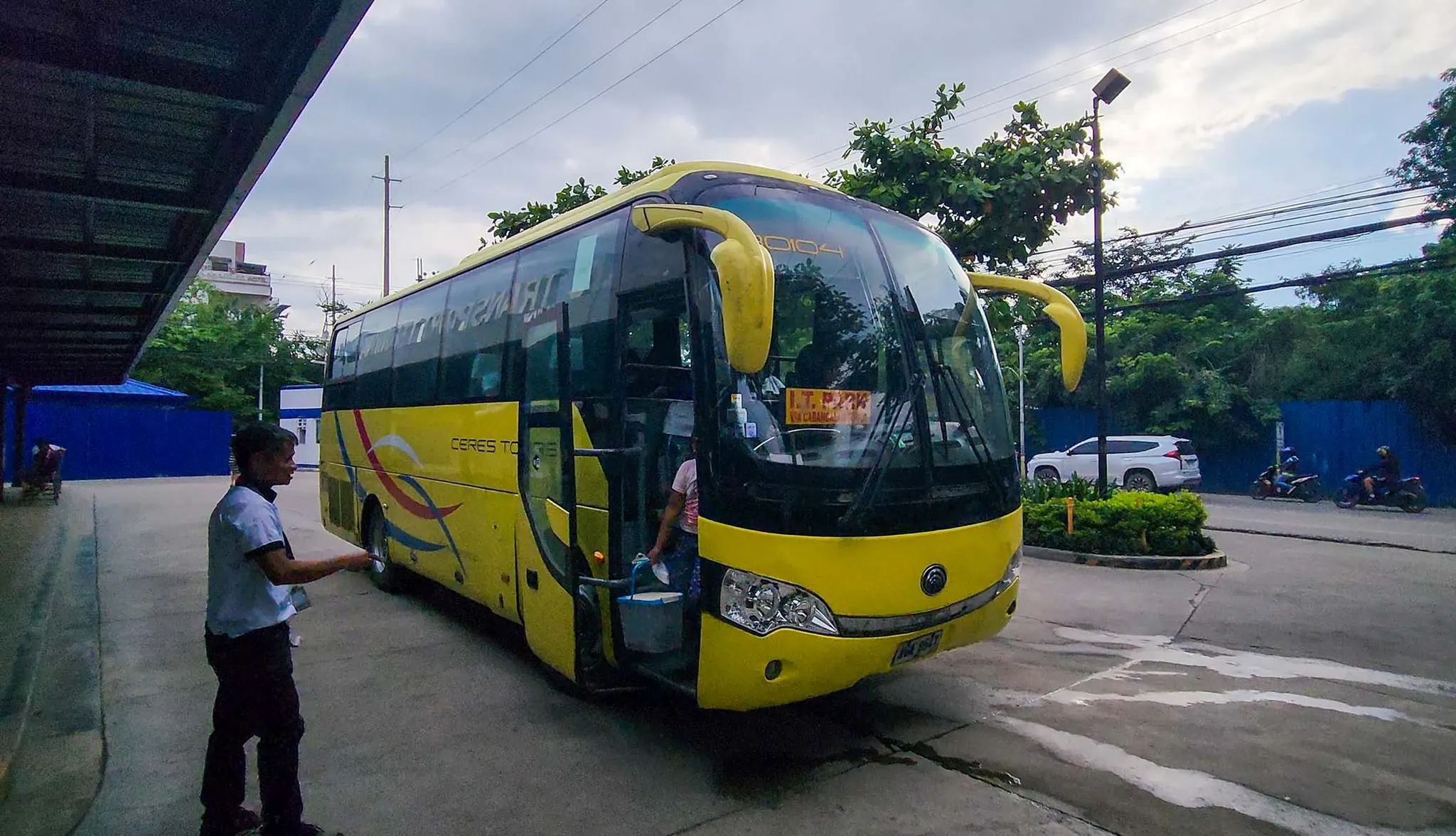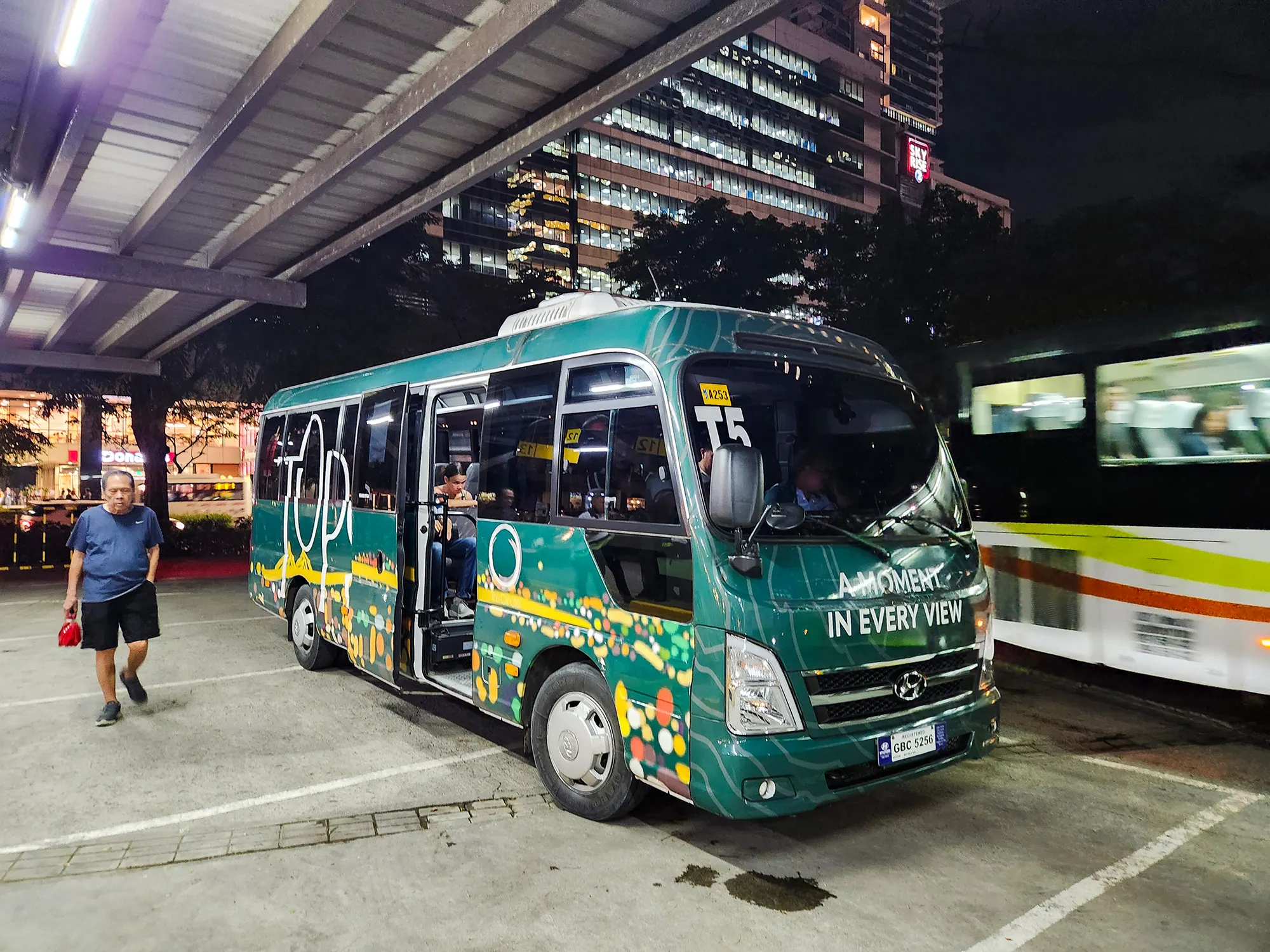막탄 뉴타운에 도착하면, 연두색 대형 버스를 찾아 타세요.