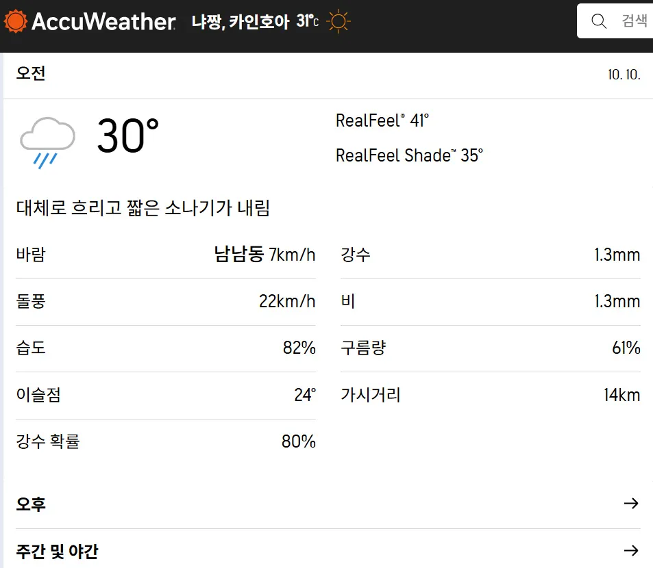 AccuWeather와 Windy.com 두 사이트를 꼭 활용해보세요.
